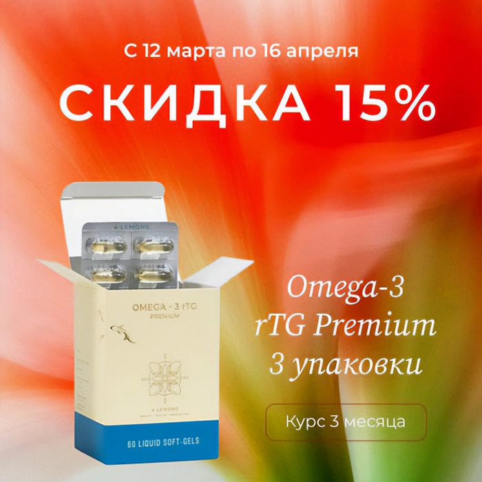 премиальная Омега от 4 Lemons банерОмега-3 rTG 4 Lemons банерДозировка Омега-3 4 Lemons банер